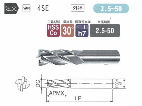 + Mã sản phẩm: 4SE14. Mũi phay 14mm (L6210), được làm bằng thép gió cobalt, đường kính mũi phay 14mm, sai số H7, góc nghiêng 30 độ.