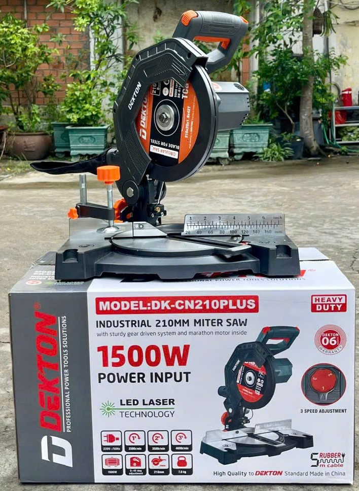 - Mã sản phẩm: DK-CN210PLUS. Điện áp 220V, công suất 1.500W, đường kính lưỡi cắt 210mm, tốc độ không tải tối đa 4.600 vòng/phút, trọng lượng 7.0Kg.