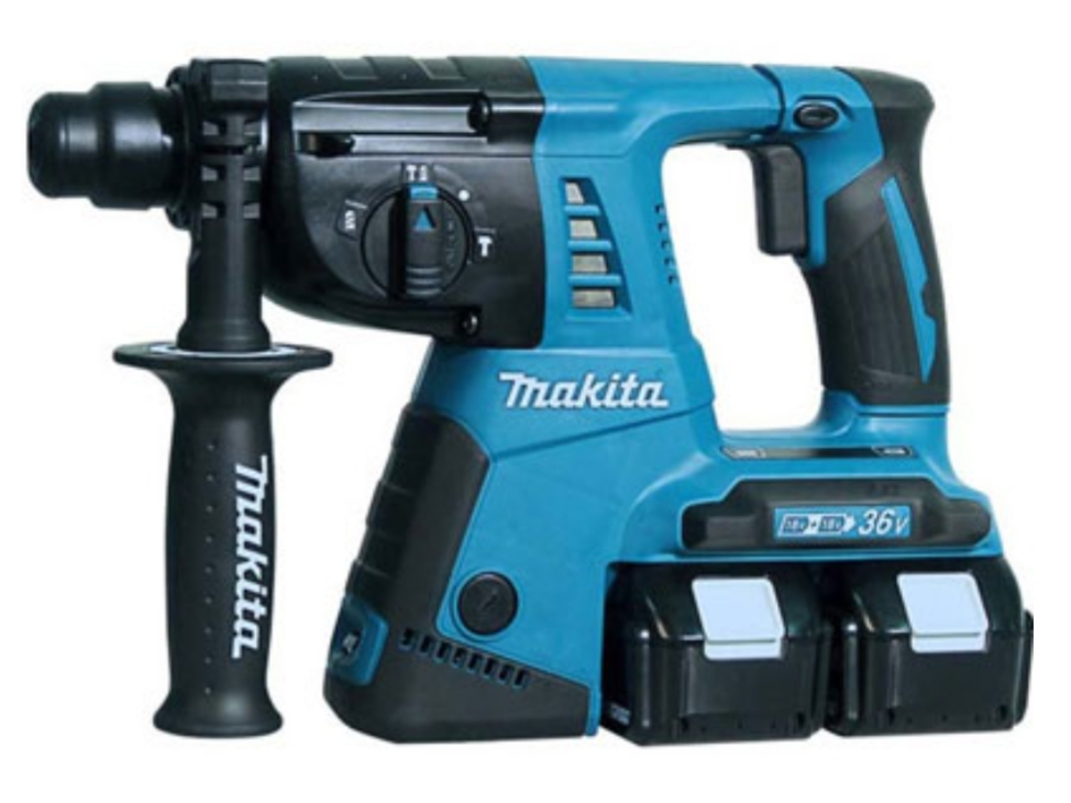 - Mã sản phẩm: DHR263RM2: Máy khoan bê tông dùng pin, điện áp 18V*2, động cơ chỗi than, 3 chức năng (khoan, khoan búa, đục), tốc độ không tải tối đa 1.250 vòng/phút, tốc độ đập tối đa 5.000 lần/phút, lực đập 2.5J, trọng lượng bao gồm pin 4.7 Kg