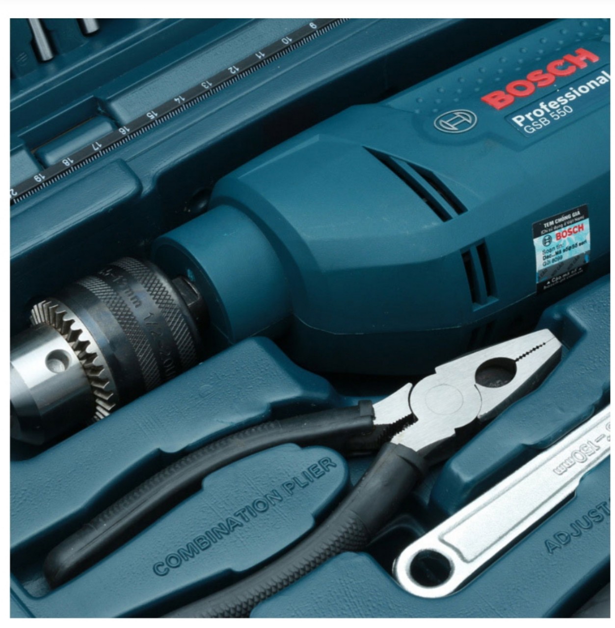 Máy khoan động lực Bosch GSB 550 + Bộ phụ kiện 100 món