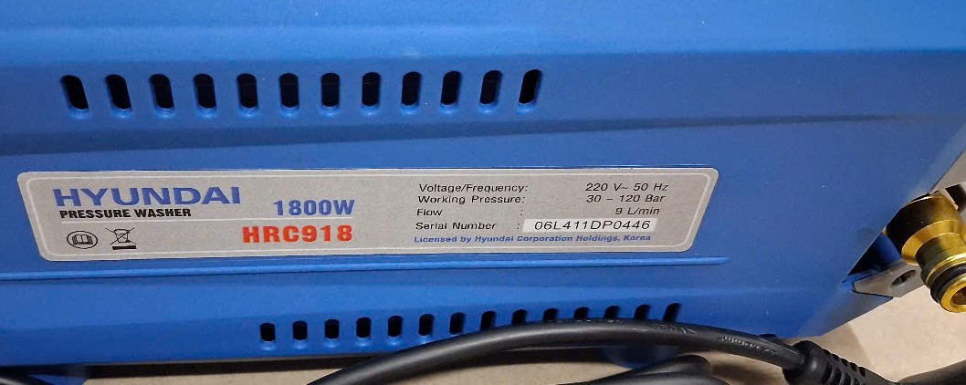 - Mã sản phẩm: HRC918. Máy xịt rửa xe, điện áp 220V, công suất 1.800W, áp lực nước 30 - 120 bar, trọng lượng 14.3 Kg.