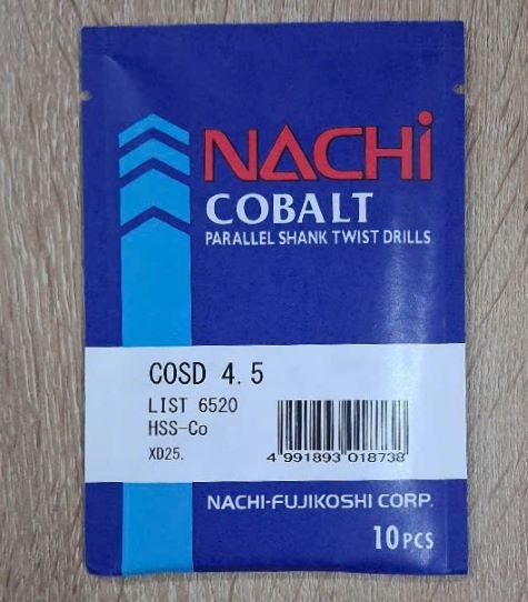Mũi khoan Nachi 4.5mm HSS-Co Inox đuôi trụ L6520-COSD 4.5